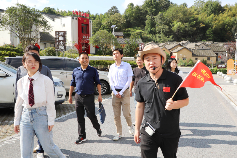 2024年9月28日,“文明中国”采访报道组成员在安徽省六安市金寨县花石乡大湾村参观、采访。新华网发 (田凯平 摄)